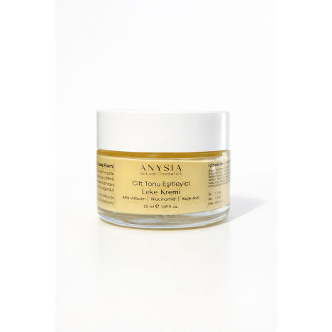 Anysia Natural Cosmetics Cilt tonu eşitleyici ve Leke Karşıtı Krem, cildiniz hep parlasın ve canlı görünüme kavuşması için formüle edildi.