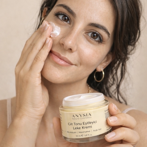 Anysia Natural Cosmetics Cilt tonu eşitleyici ve Leke Karşıtı Krem, cildiniz hep parlasın ve canlı görünüme kavuşması için formüle edildi.